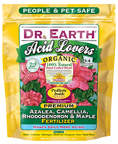 This fast acting Rhododendron, Azalea & Camellia Fertilizer is a 100% organic formula provides optimum levels of essential plant nutrients including important micronutrients and minerals as well as a broad spectrum of beneficial soil microbes and 8 select mycorrhizae strains that develop a symbiotic relationship with the root system, multiplying your plants’ ability to obtain and utilize more nutrients and moisture. The fertilizer helps acidify the soil and is ideal for Rhododendrons, Camellias, Hydrangeas, Blueberries, evergreens and other acid-loving plants.