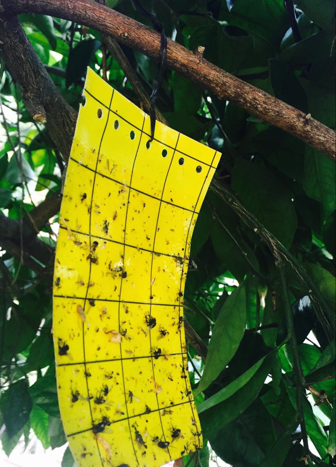 Monitor and control small flying insects such as aphids, whitefly, thrips, fungus gnats, and other pests with this Aphid & Whitefly Traps. The special yellow color attracts the insects, and the powerful glue kills them. These disposable traps use a vegetable-based glue and special paper backing making them completely compostable. Includes 4 traps.