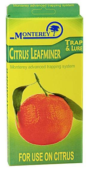 Citrus Leafminer Trap & Lure uses pheromones to attract the male leafminer where he is caught in the trap. For monitoring pest populations use one trap and lure per tree. For mass trapping use two per tree.
