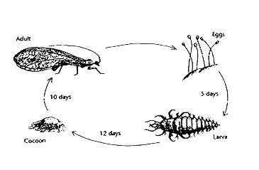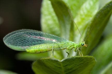Green Lacewings are available in three different stages — eggs, larvae, and adults. Lacewing larvae voraciously attack their prey by seizing them with large, sucking jaws and inject a paralyzing venom. The hollow jaws then draw out the body fluids of the pest. In general, they attack the eggs and the immature stages of most soft-bodied pests such as: aphids, thrips, spider mites, sweet potato & greenhouse whitefly, mealybugs, leafhoppers, and the eggs and caterpillars of most pest moths. Of all available commercial predators, the lacewing is the most voracious and has the greatest versatility for pests of field crops, orchards, and greenhouses.